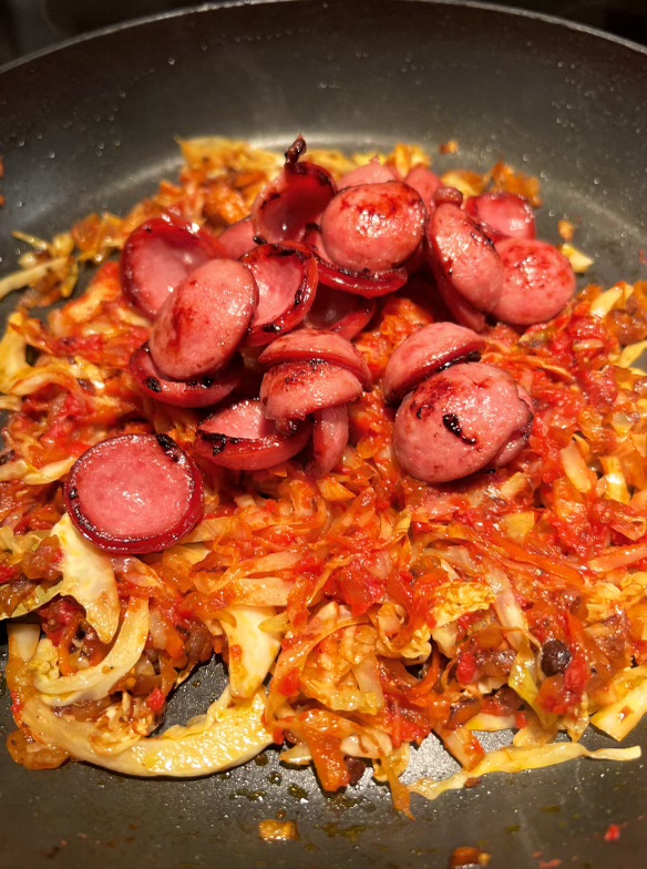 In Russian, this meal is called Тушеная Капуста с Сосисками (Stewed Cabbage with Sausages)