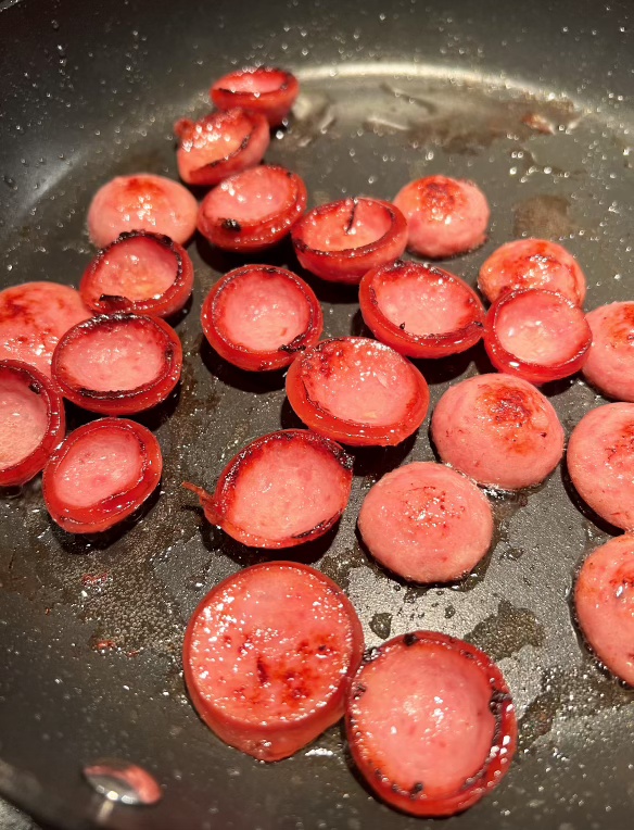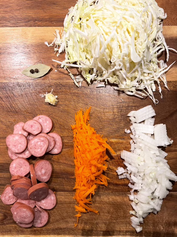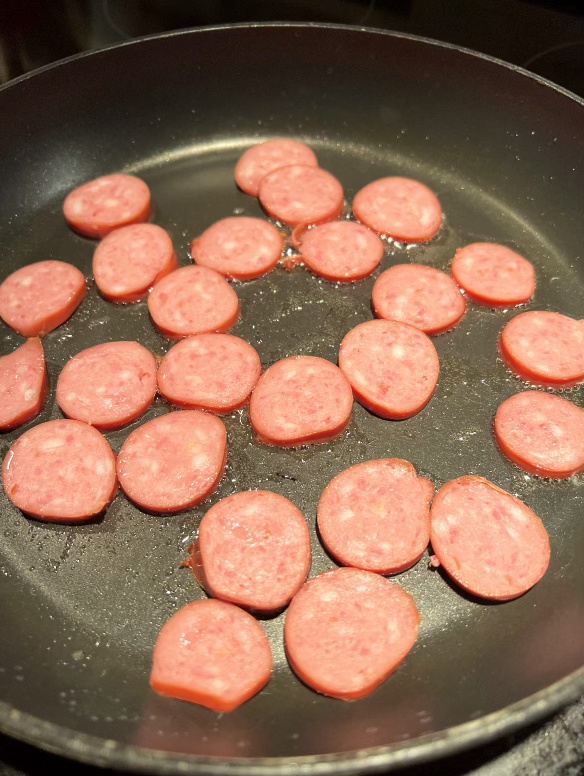 - 1 – 2 kielbasa sausages (depending on size) or you can use hotdogs or any other smoked sausage you desire, sliced.