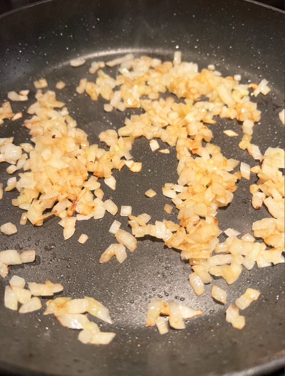 Cook until onions begin to become slightly opaque/translucent/browned.