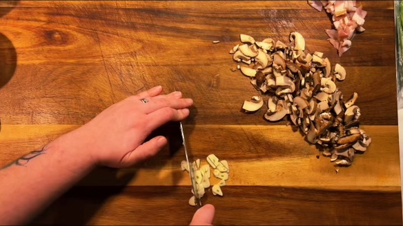 Slice your mushrooms and dice or grate your garlic and set aside.