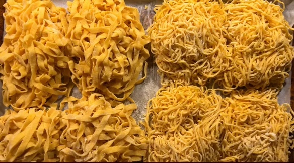 - Coat your cut pasta in flour and set aside. Grab your next piece of cut pasta dough and start with step 4 all over again. Continue until you have enough pasta for your liking or until you’ve finished all your dough.