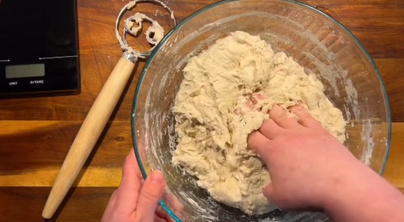 Once your dough has rested, uncover it and begin the first of four stretch and folds. Do this every 30 minutes. This will take 2 hours to complete if you do 4 of them.