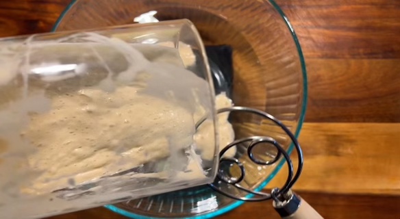 Combine your warm water with your active starter. Mix thoroughly.